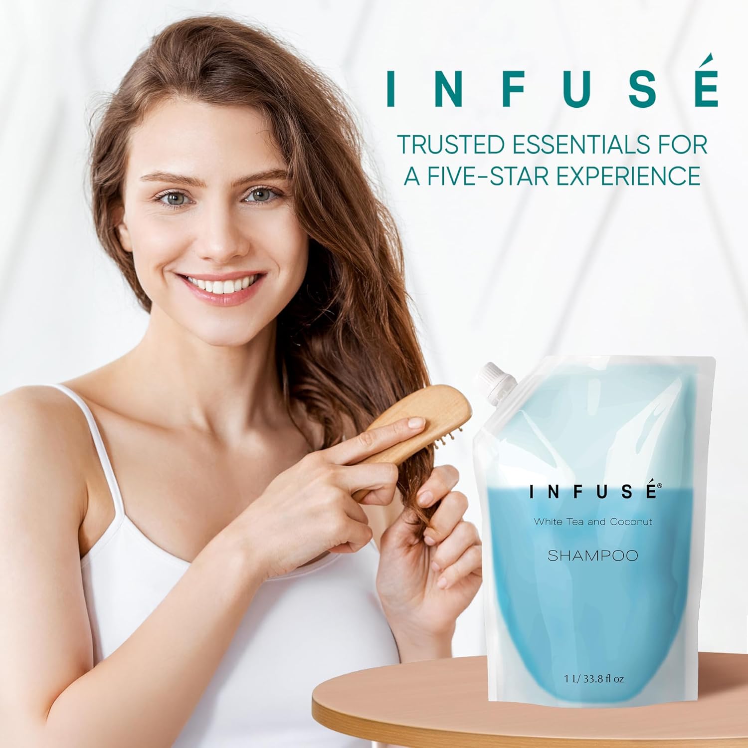 - HOTEL-QUALITY, LUXURIOUS AMENITIES: Enhance your guest experience with the Infuse White Tea and Coconut in a convenient 1-Liter Refill Bag, designed to refill wall-mounted and stand-alone dispensers. Enriched with white tea, coconut, organic aloe, and olive oil, this gentle, daily-use formula suits sensitive skin and hair. Ideal for hotels, vacation rentals, guest bathrooms, and homes, these premium amenities add sophistication and functionality to any hospitality space.